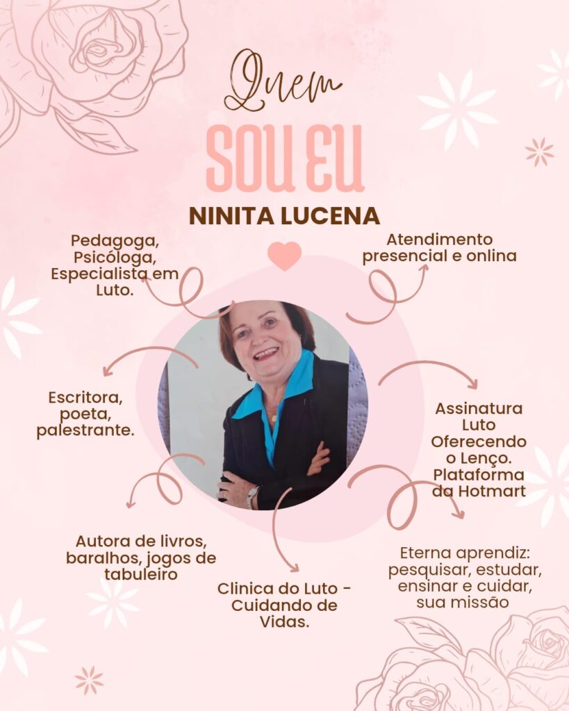 Cheguei aqui nas asas da imaginação e quero lhe apresentar minha casa virtual, meu site. Sou Ninita Lucena, Pedagoga, Psicanalista, Psicóloga e especialista em luto.